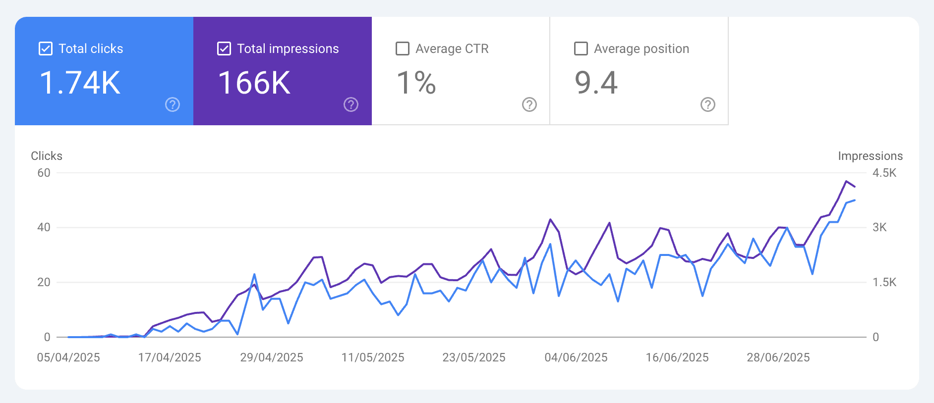 These results demonstrate the effectiveness of programmatic SEO when executed properly, achieving significant organic reach purely through search engine optimization.
